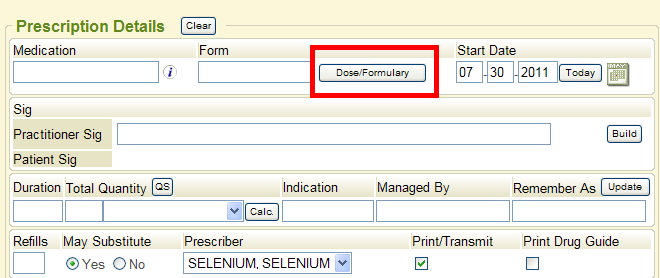 To see the Dosing and Formulary screen in its entirety when prescribing a med, the Form of the medication must be selected.