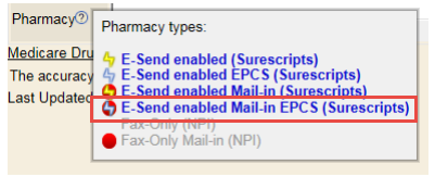 Even though providers are capable of electronically prescribing controlled substances, not all pharmacies are capable of receiving these electronic requests. Enterprise Health displays which pharmacies are EPCS-enabled when a pharmacy is selected for a patient.