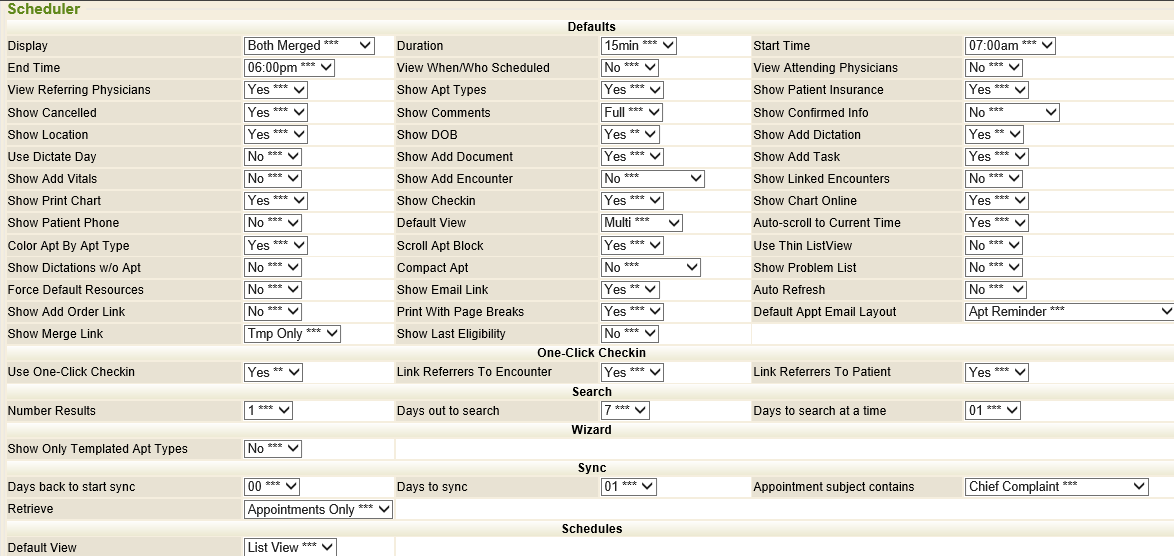 If a client uses the Checkin module, it is suggested to always default the Default Encounter Type field to Checkin. If the office uses encounters and wishes to have an alternative encounter type automatically created and opened upon check-in, that encounter type can be specified in this field.