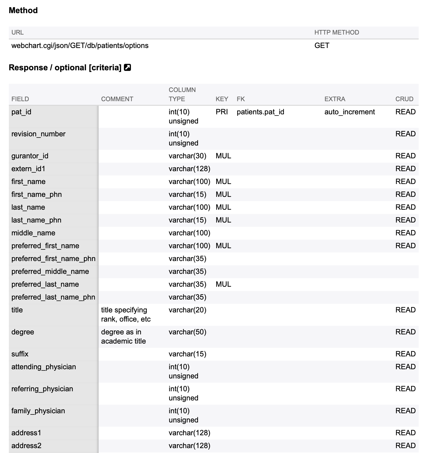 'Last Name LIKE "Wright"': 'GET/db/patients/LIKE_last_name=Wright',